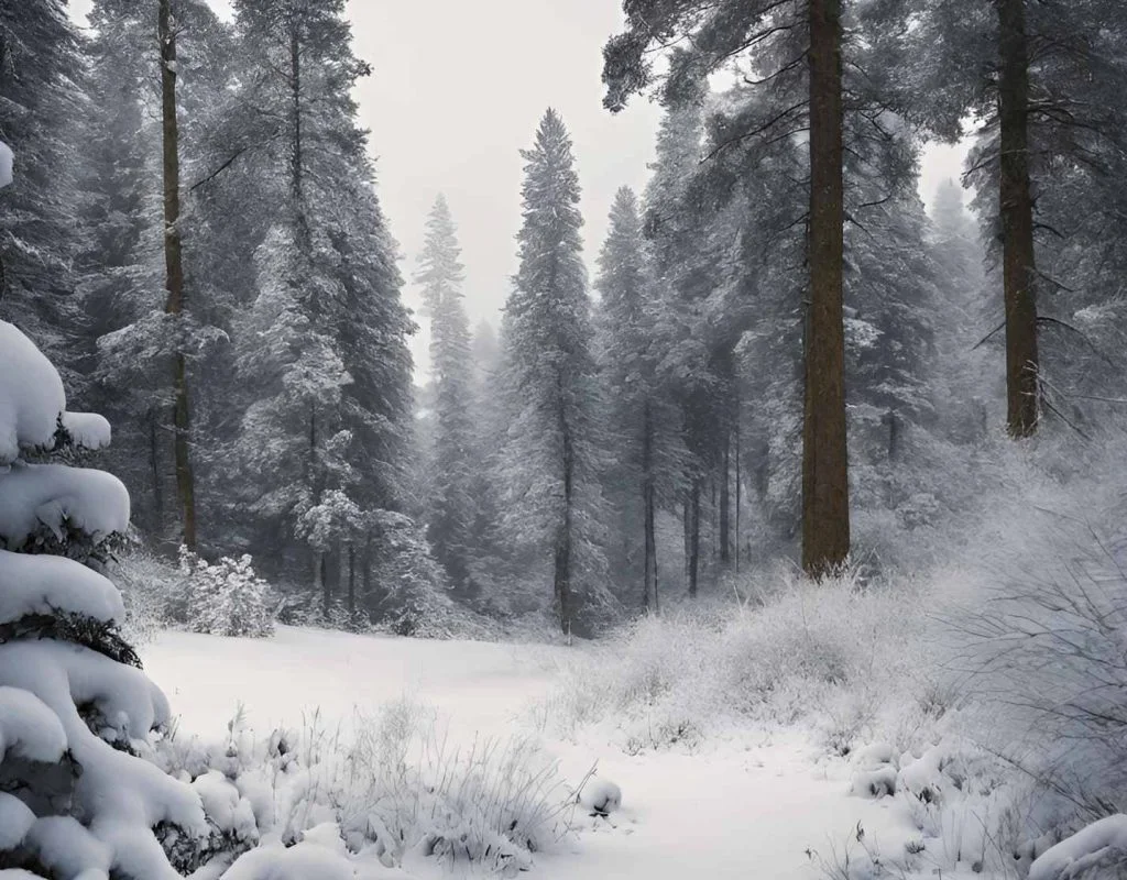 A lush green valley with gushing streams, pine forests, and flower-filled meadows.